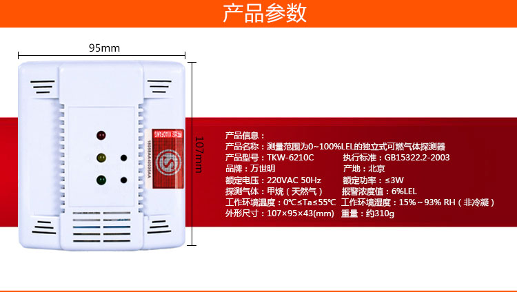 产品描述:本探测器具有以下特点:采用半导体式传感器,具有检测灵敏高,性能稳定,使用寿命长等特点;采用220VAC电源供电,即插即用,方便可靠;采用高亮LED发光二极管指示报警信息,报警声光高。
