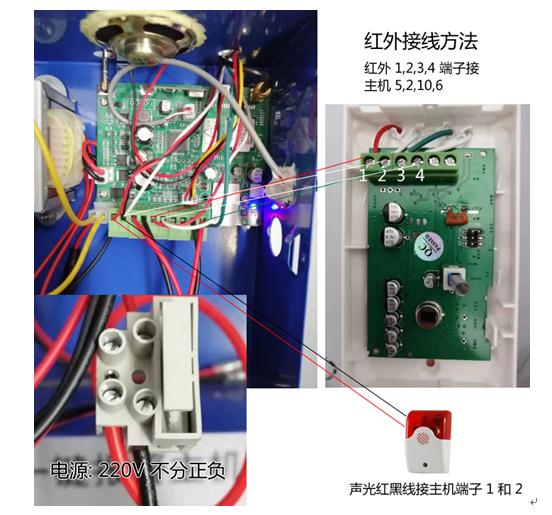 声光红黑线接主机端子 1 和 2